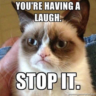 Today’s action is to have a laugh on a budget. Yes, having fun is compulsory today – and as usual Grumpy Cat is not amused.