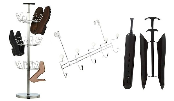 - Rotating shoe rack, £28. Sturdy, reliable shoe storage to keep halls and under-stair cupboards clutter free, holding up to 15 pairs.