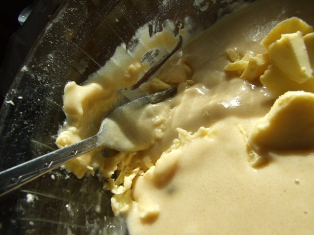3. Chop in the butter, mash it with the fork and beat it into the mixture. Keep beating until you’re satisfied with the consistency.